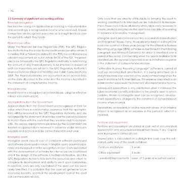 rately are measured on initial recognition at cost. Costs associated Furniture and fixtures 3 years The QFC Regulatory Authority’s financial assets include interest and QFC Regulatory Authority has retained. Continuing involvement