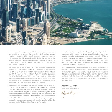 2017-2022 continues the journey that began with our First Strategic Regulatory Authority is in the fourth year of implementing new key insights to microprudential supervisory staff, senior manage- Qatar Central Bank and the Qatar Financial Markets Authority,