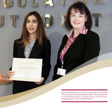 The Regulatory Authority’s first secondee was Maryam Mohammed,