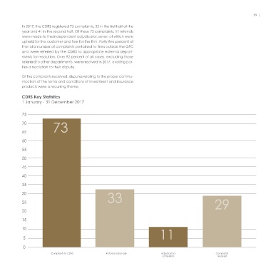 The Customer Dispute Resolution Scheme In 2017, the CDRS registered 73 complaints, 32 in the first half of the